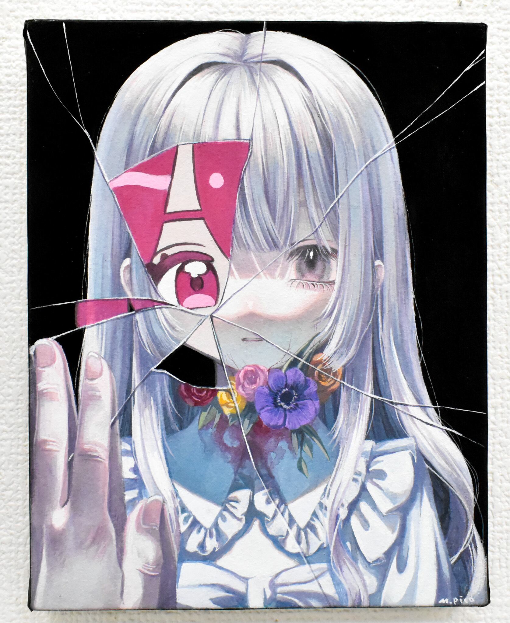 使用画材:アクリルガッシュ、紙、木製パネル