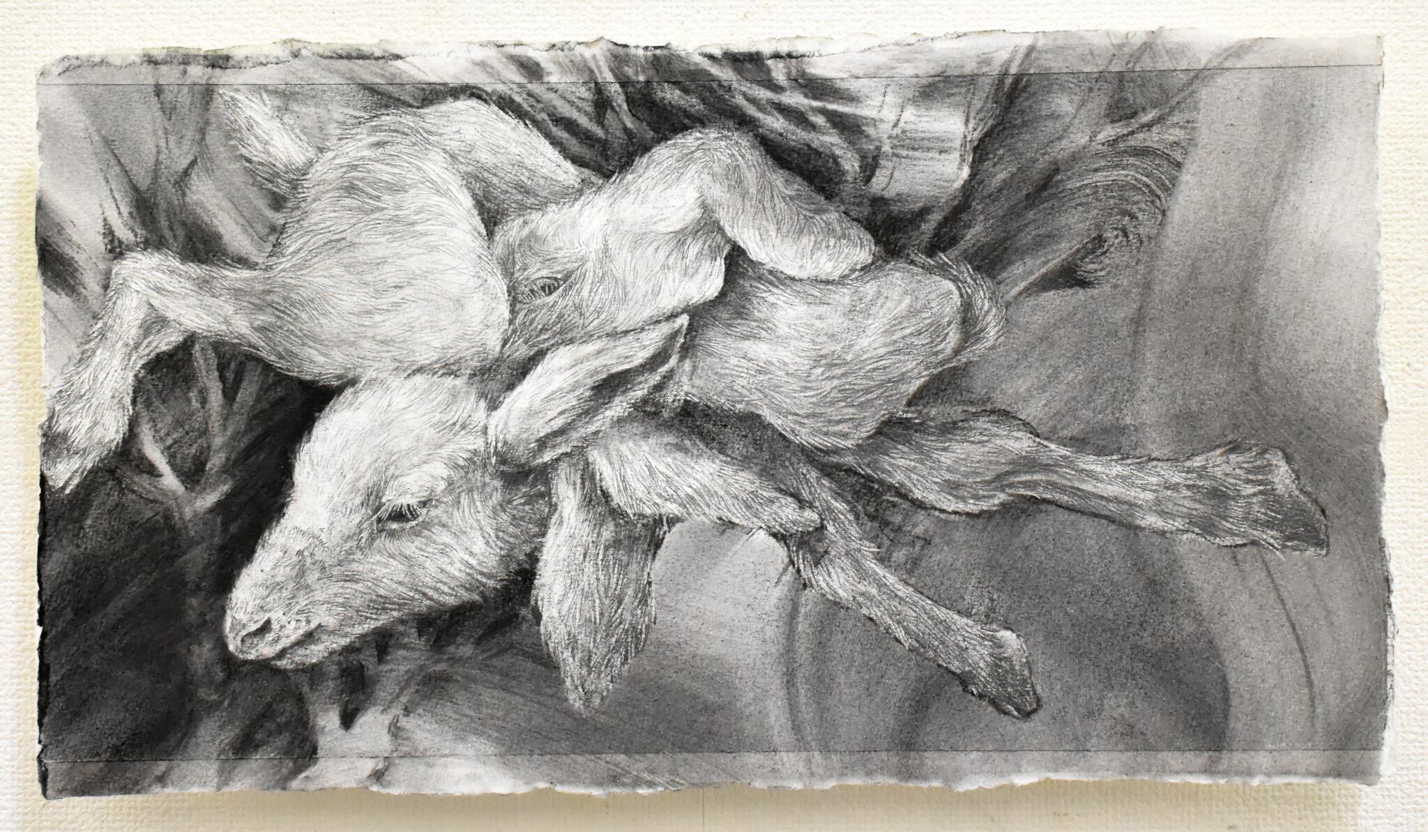 使用画材:水彩紙、鉛筆、木炭